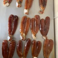月見すし 自家製カラスミ 仕込み中 毎日何回も丁寧に醤油をぬりながら干していきます! 柔らかく、濃厚なカラスミ かなりおすすめです!! 年末 お節限定!!