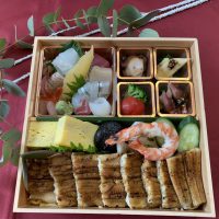 松花堂御前(リクエスト八寸なし) 11,000円 かんぱちの照り焼き、新鮮お造り、カニの月見和え、特選江戸前にぎり!! お家の贅沢時間のおともにぜひ!!